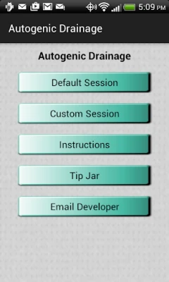 The Autogenic Drainage app provides a customizable timer with voice commands to aid in doing autogenic drainage. Autogenic drainage is a breathing exercise that is used to clear mucus from the lungs in people with lung disease. Autogenic drainage requires no equipment and is done entirely through controlling your breathing.