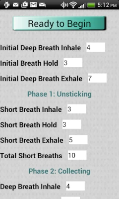 This app contains a default autogenic drainage session that was customized by a person with cystic fibrosis and also contains a fully customizable session if the defaults do not work for you. You can customize the length of every inhale, exhale, time holding your breath, and total number of breaths in each phase of autogenic drainage. Hit start and voice commands tell you when to breathe in, hold, and breathe out. The timer also displays how long your session is, the current breath number, and how many breaths you have remaining. The app also contains a reference section.