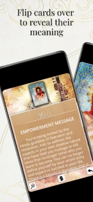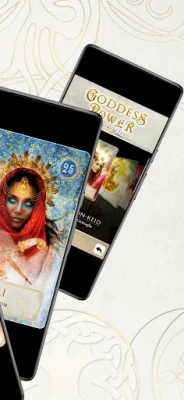 The Goddesses in this oracle card app are meant to be represented by their dominant energy and personalities instead of showing them in their classical, cultural forms, so we created non-traditional artistic representations of them. As archetypes of their essential energies, these Goddesses represent aspects within our own psyches and so we can see ourselves reflected in them and in what they represent. Seen this way, they are evolving as we are, and they are now called to be seen and experienced in a new way—which empowers us to also break free from the bondage of our old conditioning that no longer serves us.