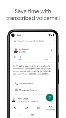 Google Voice gives you a phone number for calling, text messaging, and voicemail. It works on smartphones and computers, and syncs across your devices so you can use the app in the office, at home, or on the go.