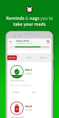 Comprehensive Med Log: View and track your medication history, including taken, skipped, and missed doses, over days, weeks, and months.