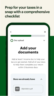 Start your taxes before your first appointment by uploading docs and info through the app and answering basic tax questions.