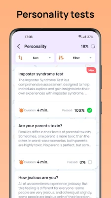Discover your true self and unlock your full potential with Psychotests! This comprehensive app is designed to help you delve deep into your personality, abilities, and areas for growth through a wide range of popular and meticulously crafted psychological tests.